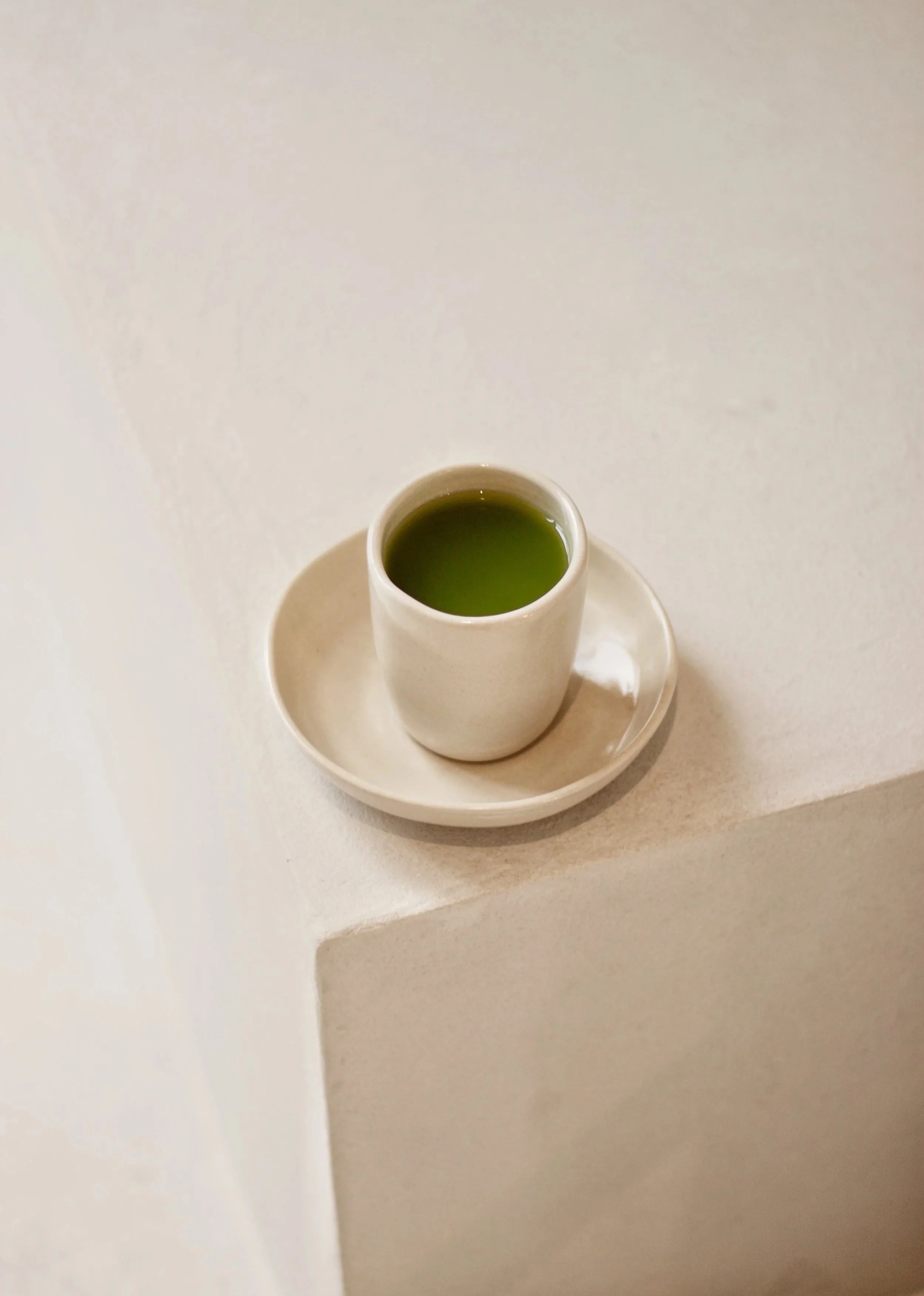 a shorter, stronger take on a traditional matcha.